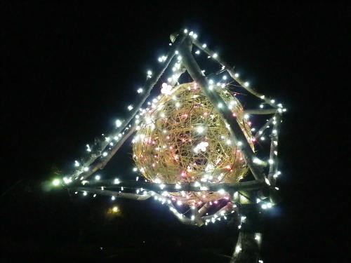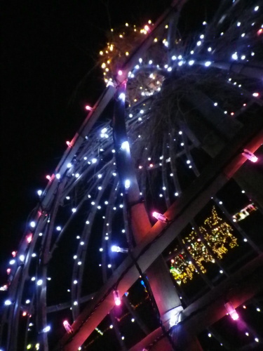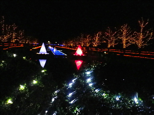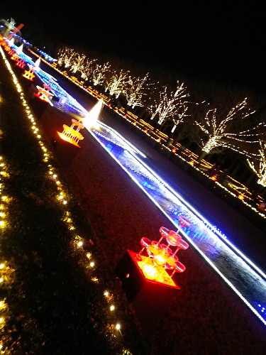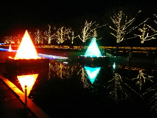 多摩の大都会の夜・・・ モノレール下にはこんなのが。 ツリーと・・・ 橋桁2本が何故かライトアップ・・・ そして昭和記念公園のイルミ。 手ブレしてますが、エントランスのイルミ。 イルミのリース。 有名な、シャンパングラスのツリー。 赤と緑に色が変る(信号か・・・?)。 あとは、一気にいきますよ~・・・ なかなか面白いものでしたが、イルミは抽象的オブジェのほうがきれいですね。 途中でデジカメのカードの容量がなくなってしまって・・・ 携帯のカメラで撮りました。