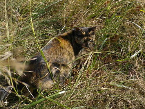 衣張山頂上で、激しく何かを貪り食っていた猫。