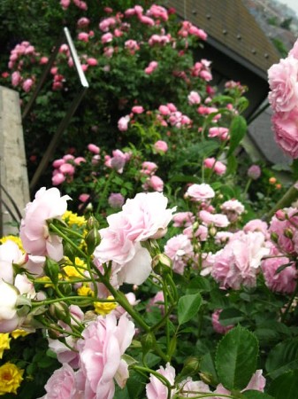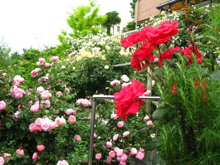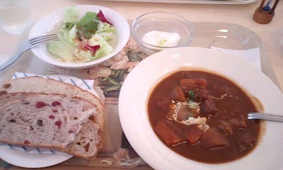 毎年行ってるな~・・・ローズカフェ。 見事なバラの庭なんだけど。 ポスティングをしていると、けっこうバラをきれいに咲かせているお宅が多いんですね。 それ見てるだけで満足してしまうのだ。 にぎわうテラス席(殆んど女性)。 もちろん、中の席も満席。 テラスはバラの香りと食べ物の匂いが混じってミョーなかほり・・・ ビーフシチューセットを食べた。 おいしかったです。 ここはパンがおいしい。 天然酵母パン。 映画の後で食べた、モンブランと紅茶。 モンブランは食べてるうちにだんだん甘くなる・・・ お茶はマスカットの紅茶。 はちみつを入れるとマイルドな味になりました。