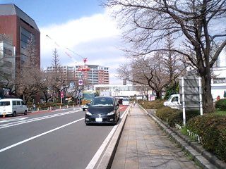 大学通りから国立駅を見る。