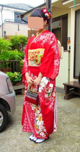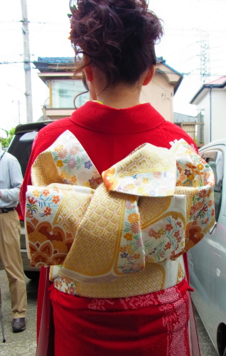お母ちゃんは、本番は自分で着付けをやるつもりでいるらしく、