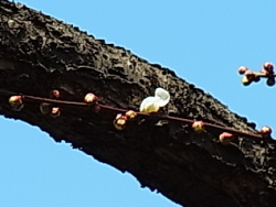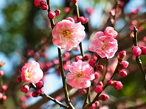 八重咲きの紅梅は咲いていたが、白い梅はまだまだ・・・