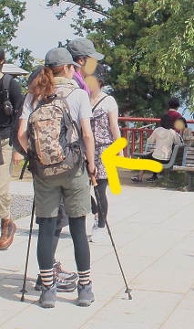 スパッツに短パンかジョギング用スカート、カラフルなソックス、というファッション?