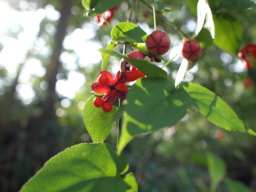 (上)コウヤボウキ?と(下)ツリバナ?