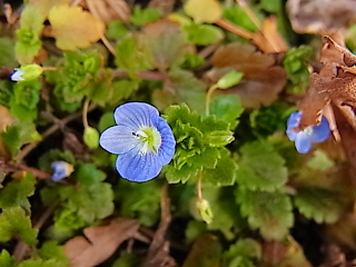 マンサク(左)、オオイヌノフグリ