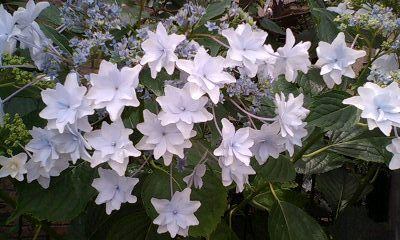 携帯のカメラで撮ってみました。 グラジオラス。 赤が潰れた~・・・ 名前の語源は、gladiator(剣闘士)と同じでしょうね。 好きな花です。 ビヨウヤナギやキンシバイに似ている。 葉っぱや実の雰囲気が、トウダイグサの仲間じゃないか、と。 スモークツリー。 最近、切花でも見かけるようになった。 埼玉の智光山公園に大きな木があった。 アジサイ。 何か名前があったけど、忘れてしまった。 半夏生。 半化粧という書き方もあるけど、 こちらの方が好きだ。 雲の向うに月が・・・ もう、コウモリも飛んでいますね。