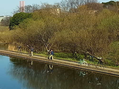 天気いいので外に出てますよ。 いちおう、帽子とマスクしてますが。 ヒロハアマナが満開。 遊水池ではオジサンたちがカメラをかまえていました。 たぶん、カワセミだろう・・・