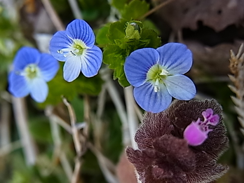 オオイヌノフグリとヒメオドリコソウ。 小さな花をマクロモードで撮ると可愛いですね。 ホトケノザ。 シデコブシ。 赤いミツマタの花。 毎年同じ時期に同じ場所に行くだけなので、 画像も毎年同じ・・・(笑)