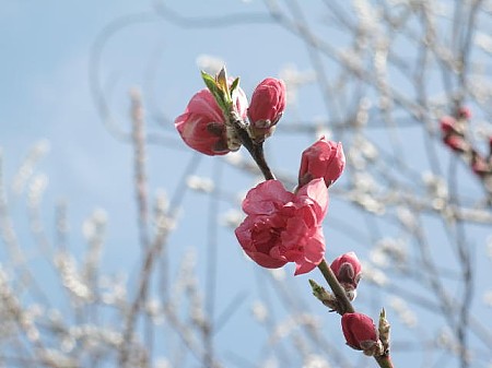 菜の花とセットで売られているのと同じ桃だと思いますが・・・