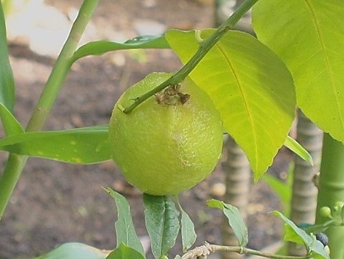 温室・・・今の時期は花より実かも。 なんだろう。 “ノニ”というのに似ているけど・・・ レモン。