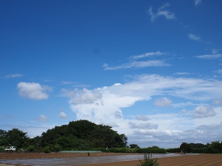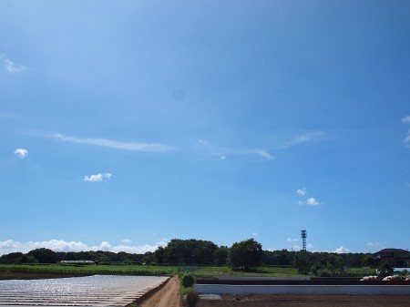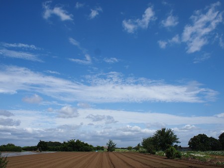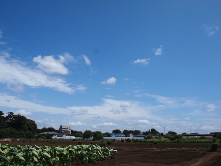 夏がく~れば思い出す・・・ はっぴいえんどの「夏なんです」 去年はこの歌に合うような青空の日が少なかったんですね。 暑いのは相変らずだったが。 今年はまさに、 ぎんぎんぎらぎらの夏なんです この歌に似合う風景のところに行ってみた。 ただの畑ですが・・・ 季節を問わず、ここはよく来ます(自転車で) 空がきれいに見えるので、好きなところです。 夏も、いい感じの夏に見える。 けっこう周辺に家が建ってきたけど、 うちの方ほどでもない(駅から離れているせいだな)