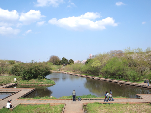 川を挟んで、桜があるほうが東京都、ないほうが埼玉県。