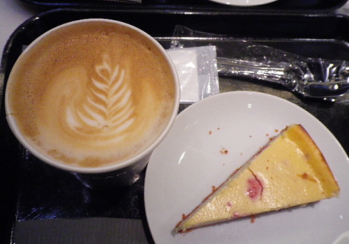 カフェラテとケーキのセット。