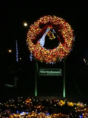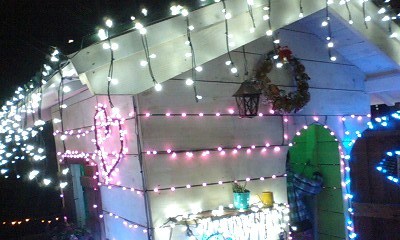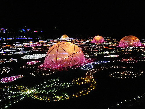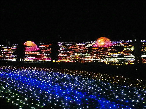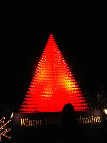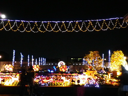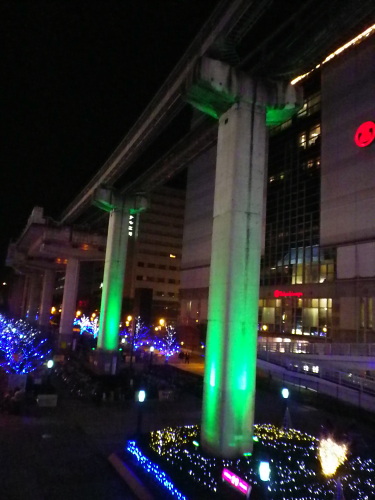 多摩の大都会の夜・・・ モノレール下にはこんなのが。 ツリーと・・・ 橋桁2本が何故かライトアップ・・・ そして昭和記念公園のイルミ。 手ブレしてますが、エントランスのイルミ。 イルミのリース。 有名な、シャンパングラスのツリー。 赤と緑に色が変る(信号か・・・?)。 あとは、一気にいきますよ~・・・ なかなか面白いものでしたが、イルミは抽象的オブジェのほうがきれいですね。 途中でデジカメのカードの容量がなくなってしまって・・・ 携帯のカメラで撮りました。