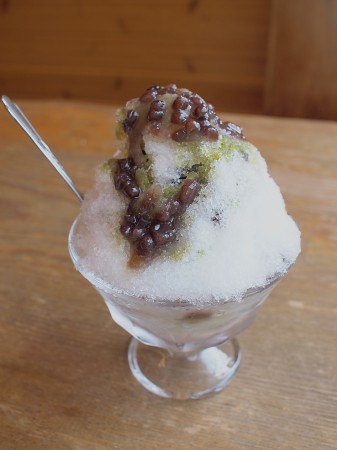 天然水の氷のかき氷(宇治金時が好きっ)。
