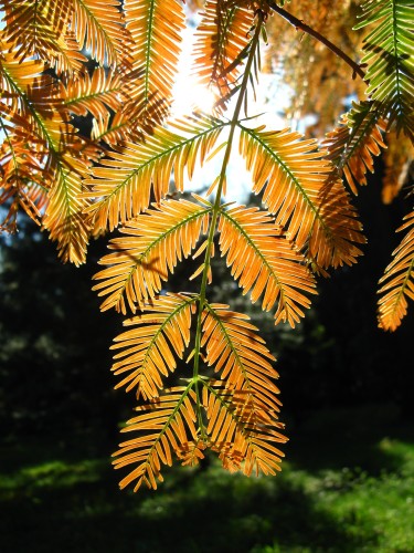 鳥の羽のようなメタセコイヤの葉。