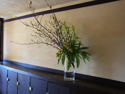 バイモとラン、桜、あとは見たことの無いもじゃもじゃした花。